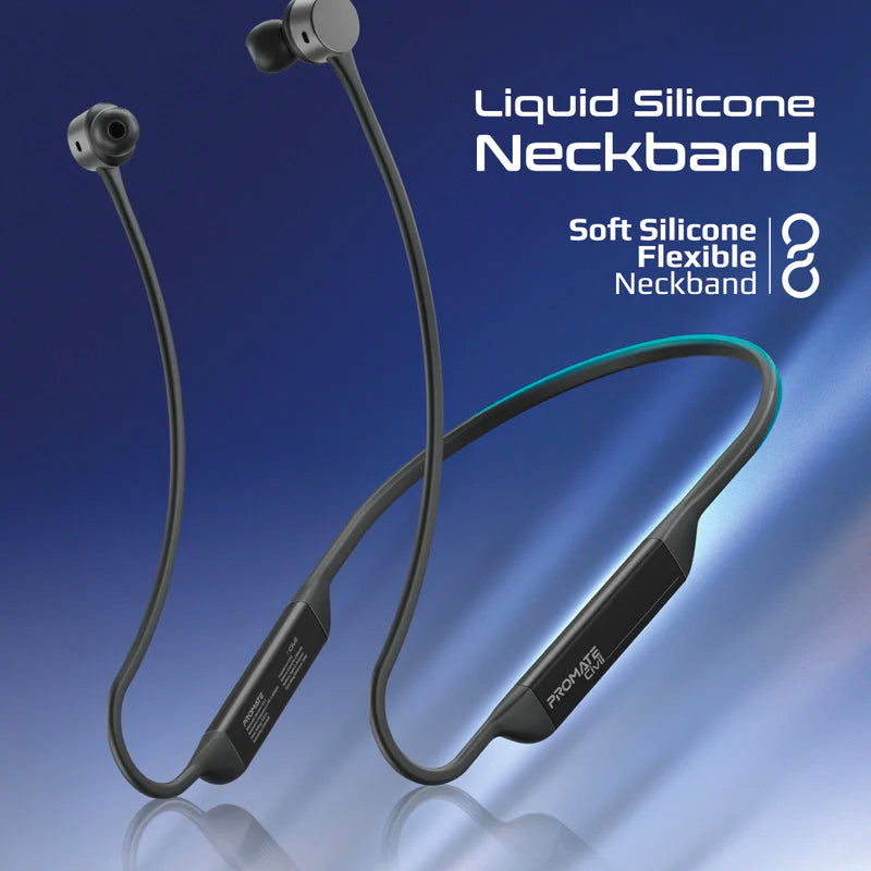 Promate Civil High-Fidelity Liquid Silicone Wireless Neckband Earphones