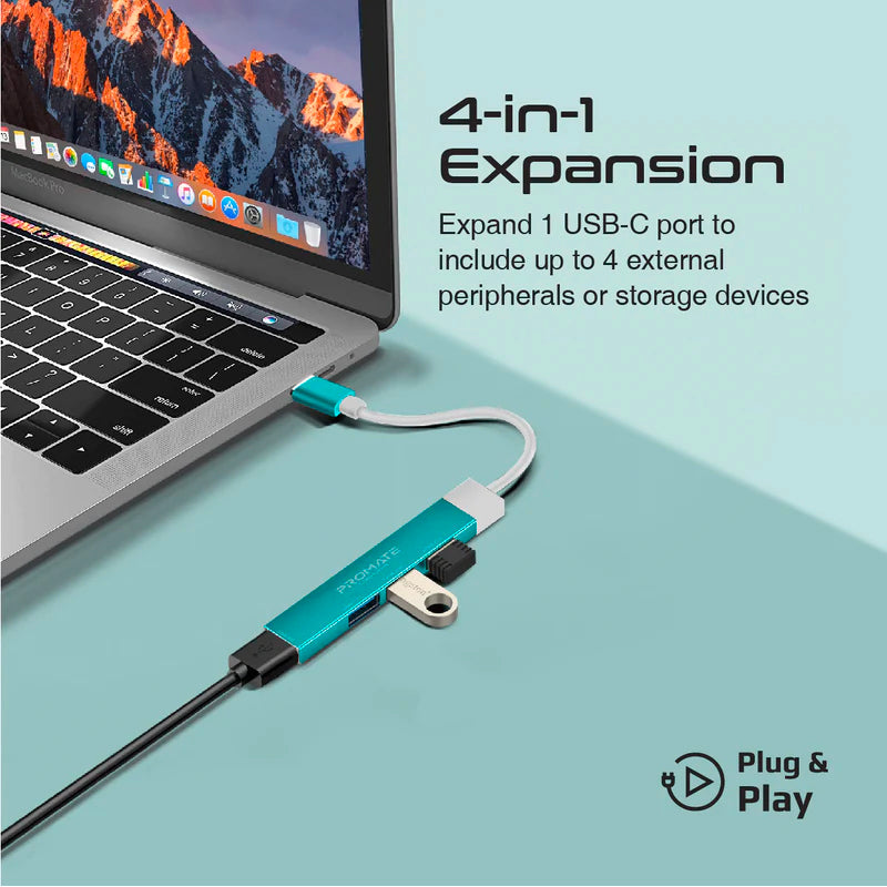 Promate LiteHub-4 4-in-1 Multi-Port USB-C Data Hub